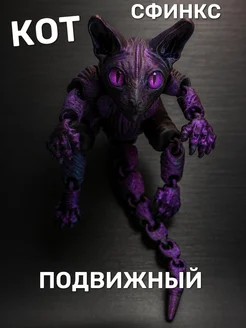 Кот Сфинкс подвижный — антистресс-игрушка, фиолетово-чёрный