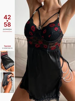 Сорочка ночная кружевная пеньюар короткий шелковый