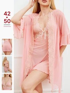 Халат с пеньюаром ночной сорочкой домашний комплект