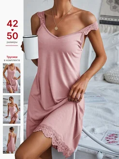 Сорочка ночная с кружевом красивая домашняя одежда