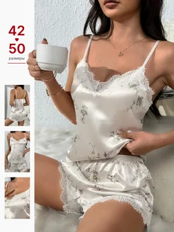 Пижама с шортами и майкой шелковая домашняя