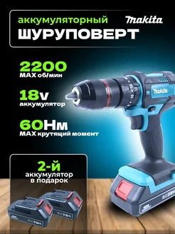Шуруповерт 18v аккумуляторный ударный с 2 АКБ в кейсе