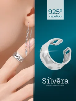 Моносерьга каффа серебро 925 серьга без прокола мятый металл