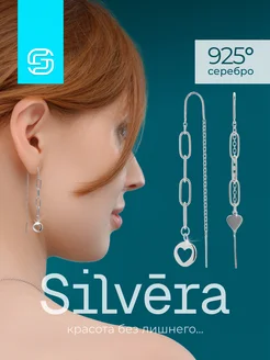 Серьги серебро 925 длинные протяжки асимметричные
