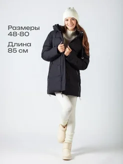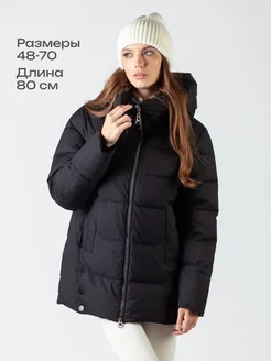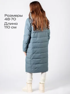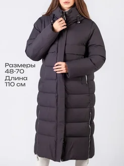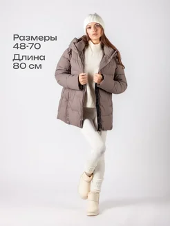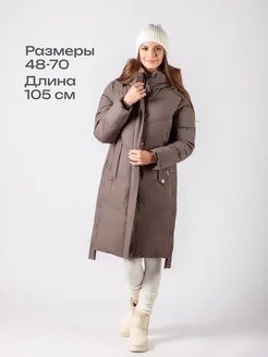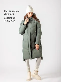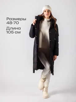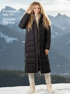 Пуховик зимний длинный оверсайз с капюшоном больших размеров