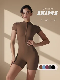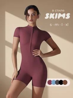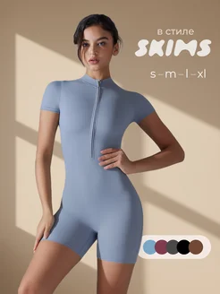 Комбинезон спортивный для фитнеса и йоги на молнии с шортами