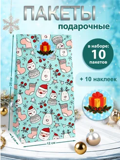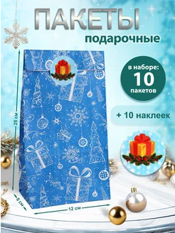 Подарочные пакеты новогодние крафт бумажные Набор 10 штук