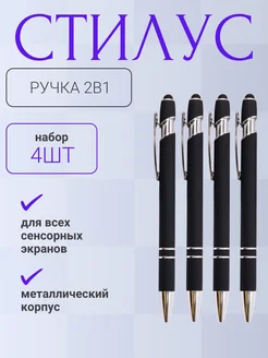 Набор ручка-стилус 2в1 с металлическом корпусом 4шт