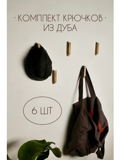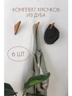 Крючки деревянные из дуба настенные 6 шт для одежды