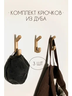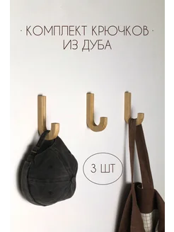 Крючки деревянные из дуба настенные 3 шт для прихожей