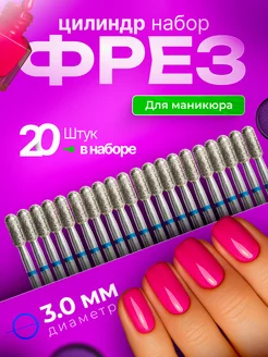 Фрезы для маникюра цилиндр, 3 мм, синее