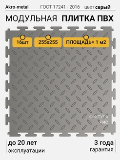 Модульная плитка ПВХ, 25х25 см (1м2) - (серый, "рис")