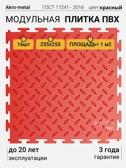 Модульная плитка ПВХ, 25х25 см (1м2) - (красный, "рис")