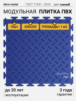Модульная плитка ПВХ, 25х25 см (1м2) - (синий, "рис")