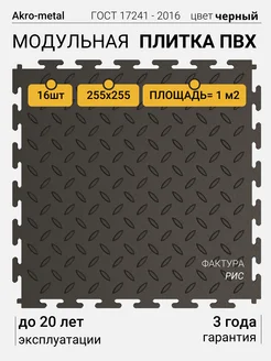 Модульная плитка ПВХ, 25х25 см (1м2) - (черный, "рис")