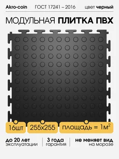 Модульная плитка ПВХ, 25х25 см (1м2) - (черный, "монетка")