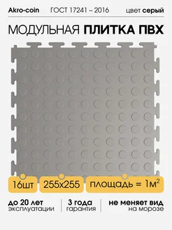 Модульная плитка ПВХ, 25х25 см (1м2) - (серый, "монетка")