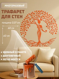 Трафарет для стен Дерево-женщина M, ПЭТ 0,7 мм