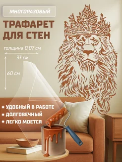 Трафарет для стен Лев с короной S, ПЭТ0,7 мм