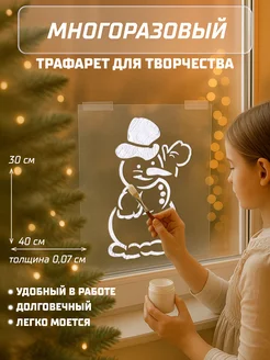 Трафарет новогодний на окна - Снеговик 40х30 см - 0,7 мм