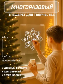 Трафарет новогодний большой - Снежинка 40х40 см - 0,7 мм