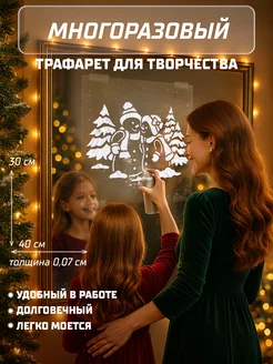 Трафарет новогодний на окна - Снеговики 40х30 см - 0,7 мм
