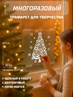 Трафарет новогодний на окна - Елка 40х30 см - 0,7 мм