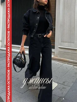Джинсы прямые широкие трубы с высокой посадкой