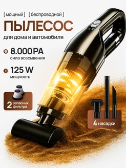 Мини пылесос беспроводной для автомобиля и дома с насадками