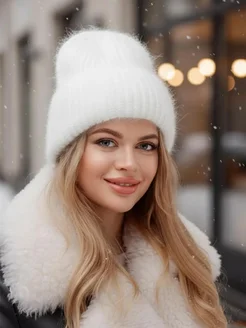 Шапка зимняя вязаная ангора на флисе