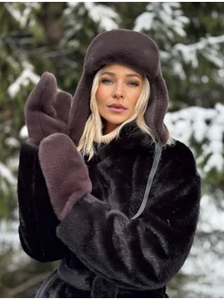 Шапка ушанка зимняя меховая пушистая теплая