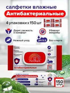 Влажные салфетки с клапаном антибактериальные 600 шт