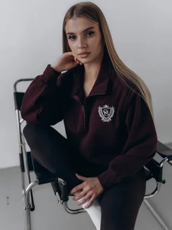 Свитшот оверсайз на полузамке теплый