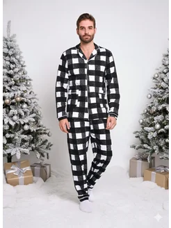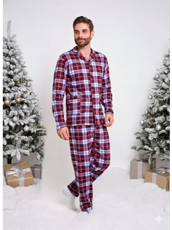 Пижама со штанами с длинным рукавом теплая большие размеры