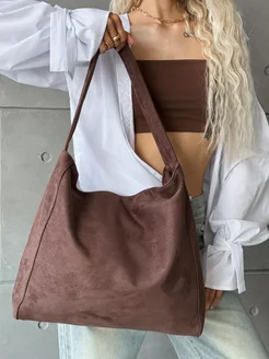 Сумка шоппер замшевая на плечо большая на молнии