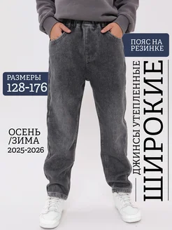 Джинсы теплые на резинке широкие