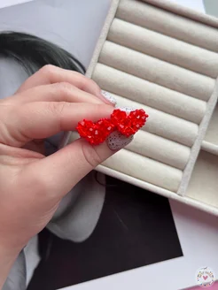 Серьги "Любовь" из бисера и стеклянных бусин красные сердца