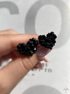 Серьги "Мистерия" из бисера и стеклянных бусин черные сердца