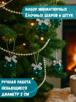 Набор миниатюрных шаров для елки из бусин изумрудного цвета
