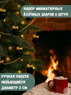 Набор миниатюрных шаров для елки из бусин черного цвета