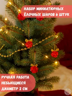 Набор миниатюрных шаров для елки из бусин красного цвета