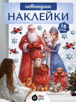 Новогодние наклейки на стену Дед Мороз и Снегурочка