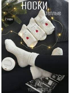 Носки высокие теплые плюшевые 2 пары с сердечком