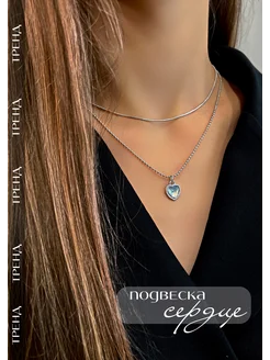 Кулон сердце чокер украшение на шею y2k лунный камень