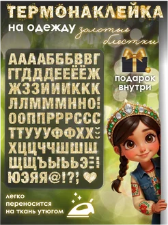 Блестящая термонаклейка алфавит Буквы русские золотые