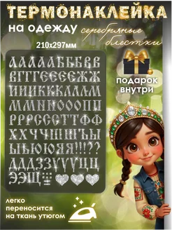 Блестящая термонаклейка Буквы русские славянские серебряные
