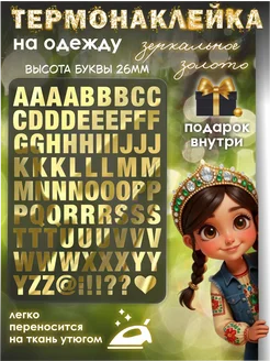 Зеркальная термонаклейка алфавит Буквы английские золото
