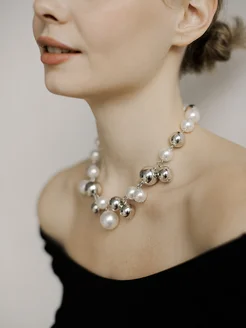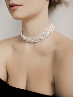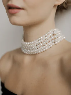 Колье на шею жемчуг многослойное ожерелье бижутерия