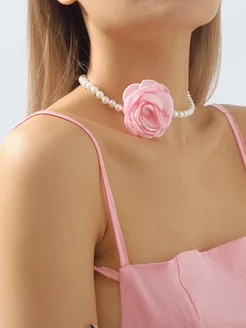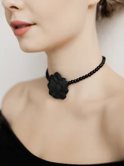 Бижутерия чокер цветок на шею роза черный жемчуг