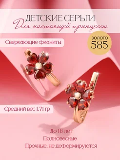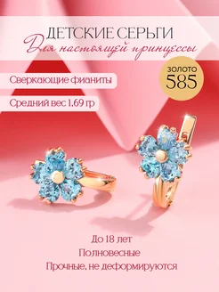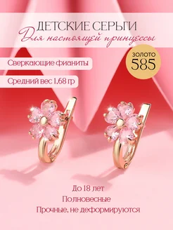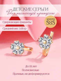 Элитные золотые серьги 585 "Цветочки" для девочки